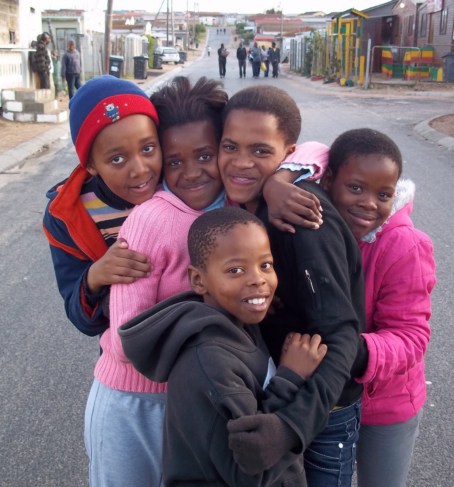 As crianças, claro, estão por toda a parte. Aliás, todos estão por toda parte – é fim de tarde de feriado. Apesar do frio, as pessoas reúnem-se na rua, as crianças brincam e passeiam em grupos; querem saber quem somos, o que fazemos ali, de onde viemos, quando tempo vamos ficar. Ficam contentes, até orgulhosos, de nos verem ali, uma visita pouco usual nesse mar de ébano – “estou feliz de ver vocês aqui, é bom que não tenham medo, porque este é um lugar de paz”. O inglês, precário, não permite muitas conversas, mas é comovente o abraço que recebemos de todos, o calor que as pessoas emanam e nos deixa muito longe de sentir o perigo e o risco que o guia turístico anunciava. É provável que tenhamos perdido todas as atrações de Kayelitsha – a igreja anglicana que centraliza a imensidão de trabalho solidário feito aqui, as vistas da Table Moutain que já figuram em roteiros internáuticos, os pequenos mercados e as centros de produção de artesanato… Ainda assim, foi melhor desta forma, sem esquemas nem organizações, sem segurança nem preparação, a não ser a interna, aquela que pede, imperativamente, que nos desagraguemos e desacomodemos de nós mesmos, para voltar ao nosso mundo, tão pequeno, tão privilegiado, tão assombrosamente desigual, mais preparados para guardar as lentes de aumento quando em face dos nossos desesperozinhos.
