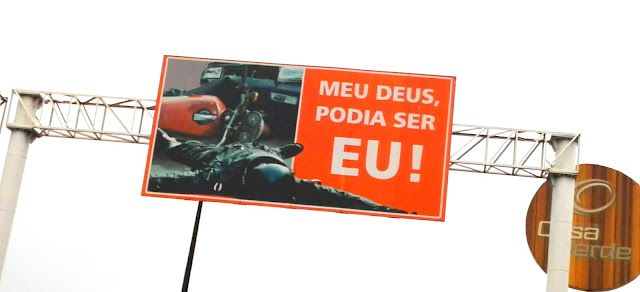 Importante era o EU, assim nessa letra garrafal, dava pra ver de longe, maior que tudo. E do lado o motociclista, estendido ao comprido, dando mesmo a entender que era Outro, e não EU. EU estava passando por baixo da placa, aliviado que fosse Outro e não EU estatelado no asfalto. Com vida ou sem ela. A placa fazia prever o pior.